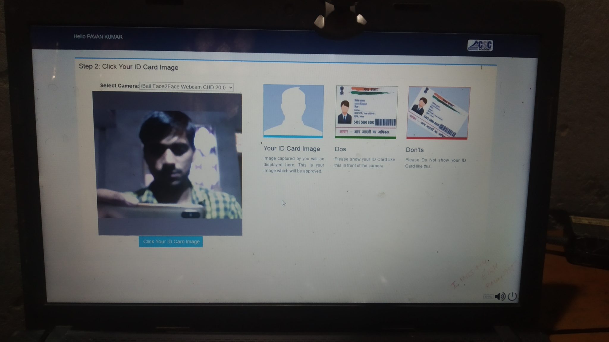 step 6:अब आपके सामने एग्जाम देने वाले का आधार कार्ड आपको अपने लैपटॉप के कैमरे से कैप्चर करके अपलोड करना होगा ! जैसा कि आप इमेज में देख पा रहे हैं !