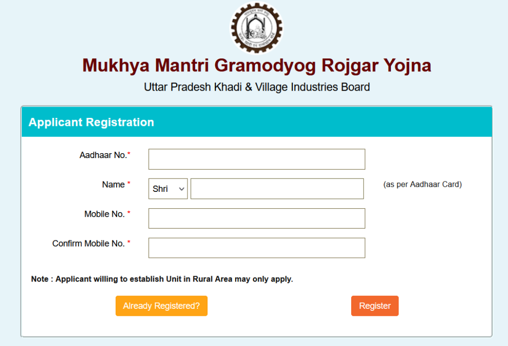 ग्रामोद्योग रोजगार योजना ऑनलाइन आवेदन ( Uttar Pradesh Mukhyamantri Gramodyog Rojgar yojana Uttar Pradesh)