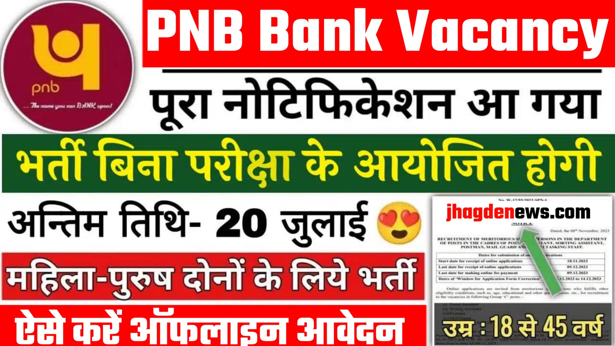 PNB Vacancy : क्या आप लोगों का सपना है पंजाब नेशनल बैंक में बिना परीक्षा दिए हुए नौकरी पाने का तो हम आप सभी लोगों को बता दें कि आप लोगों का सपना बहुत जल्द ही सकार होने वाला है क्योंकि आप सभी को हम बता दे कि पंजाब नेशनल बैंक में बिना परीक्षा भर्ती का नोटिफिकेशन जारी हो गया है।