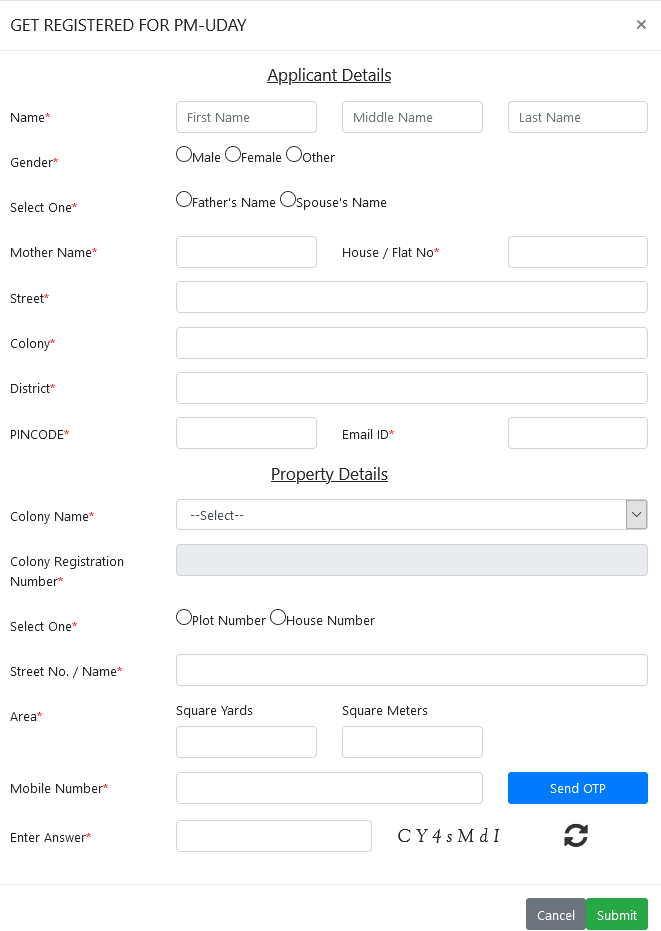 Apply Online for PM UDAY Yojana ,Delhi Unauthorized Colony Houses Online Registry Application Form 2020